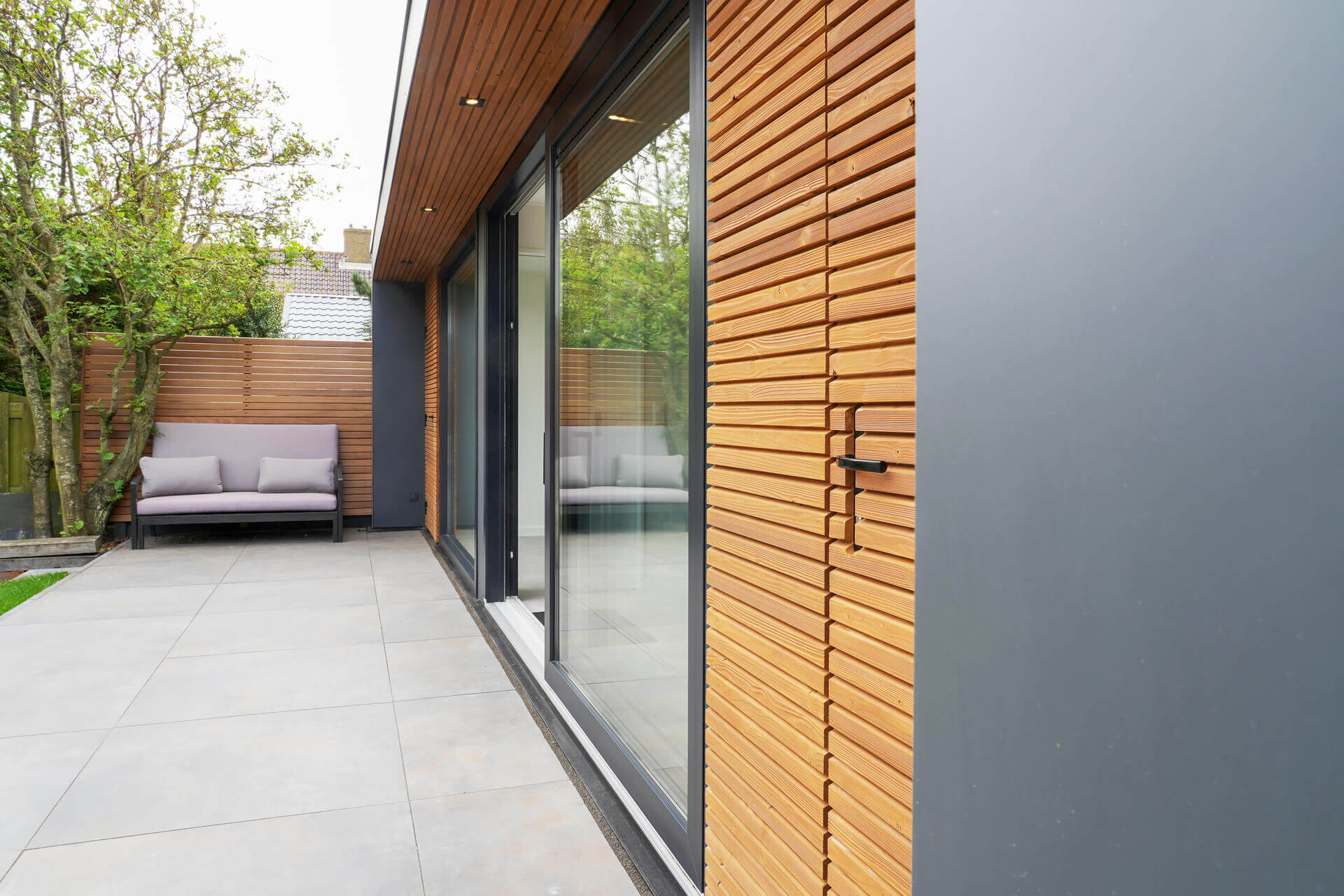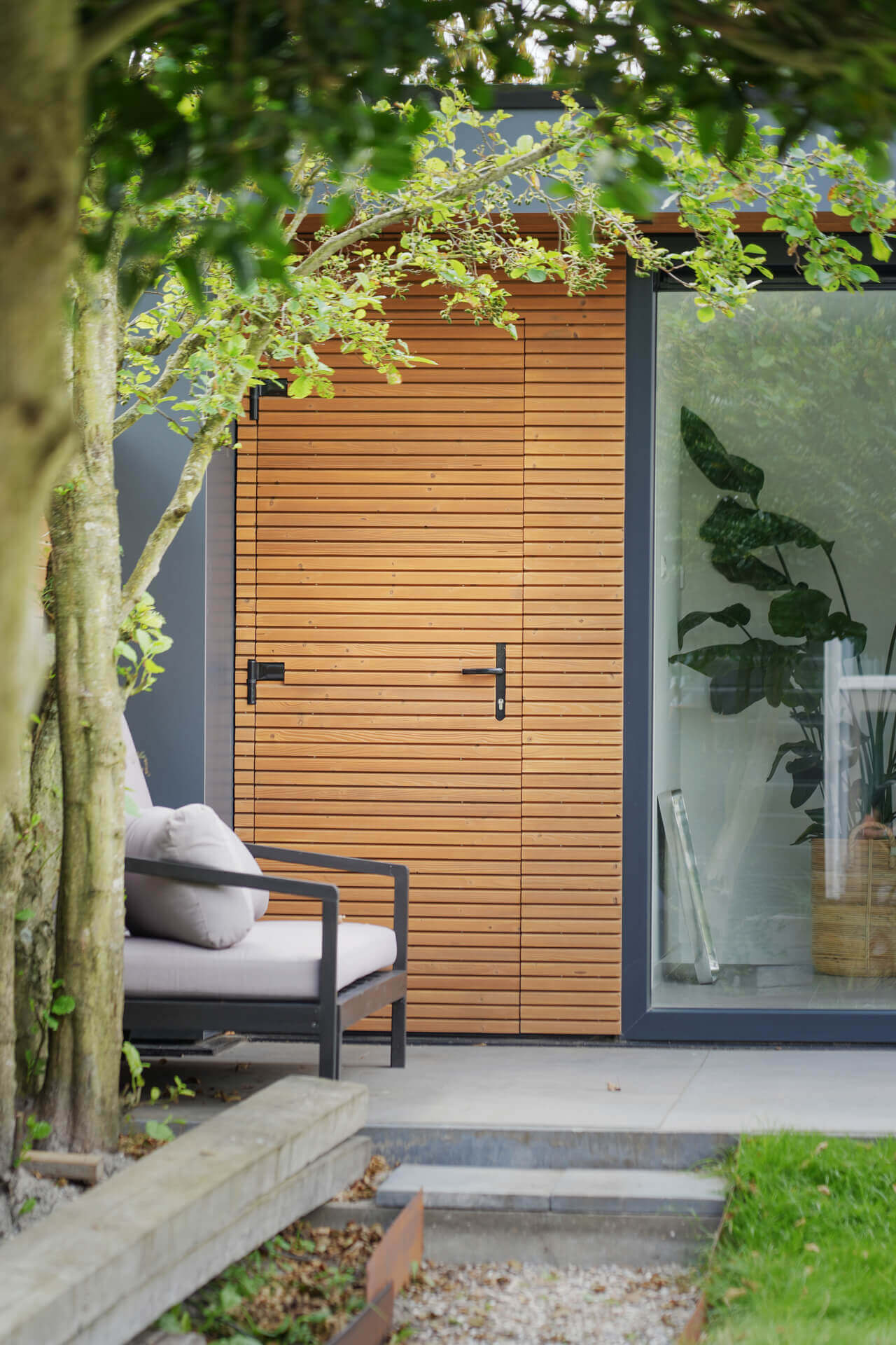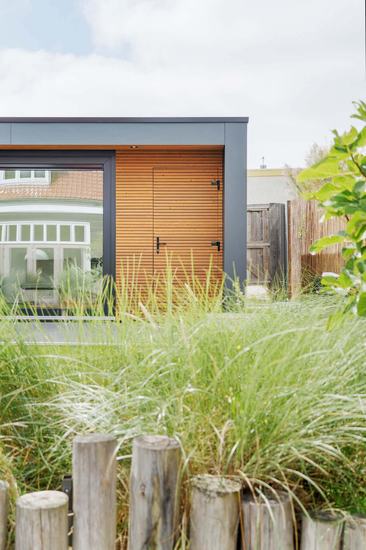 PENSIONE is het Italiaanse woord voor gastenverblijf. Dit moderne gastenverblijf staat aan de rand van de Noord-Hollandse duinen, in het historische dorp Huisduinen. Het kenmerkt zich door grote glazen schuifdeuren die ervoor zorgen dat de diepte van de tuin behouden blijft. Tegelijkertijd geven de forse raampartijen vanuit het gastenverblijf een prachtig uitzicht op de mooi aangelegde tuin.